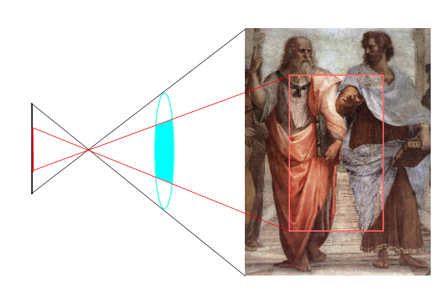 Veien til lyset begynte med at jeg satte EF 50 mm på kameraet mitt, sjekket hva jeg så, og byttet til EF-S 17-55 og sjekket hva jeg så på 50 mm der. Overraskende nok fikk jeg bekreftet at de faktisk viser det samme. Kontra-intuitivt for meg, men hvis du bare ser på tegningen der oppe, så ser du lett at det stemmer.